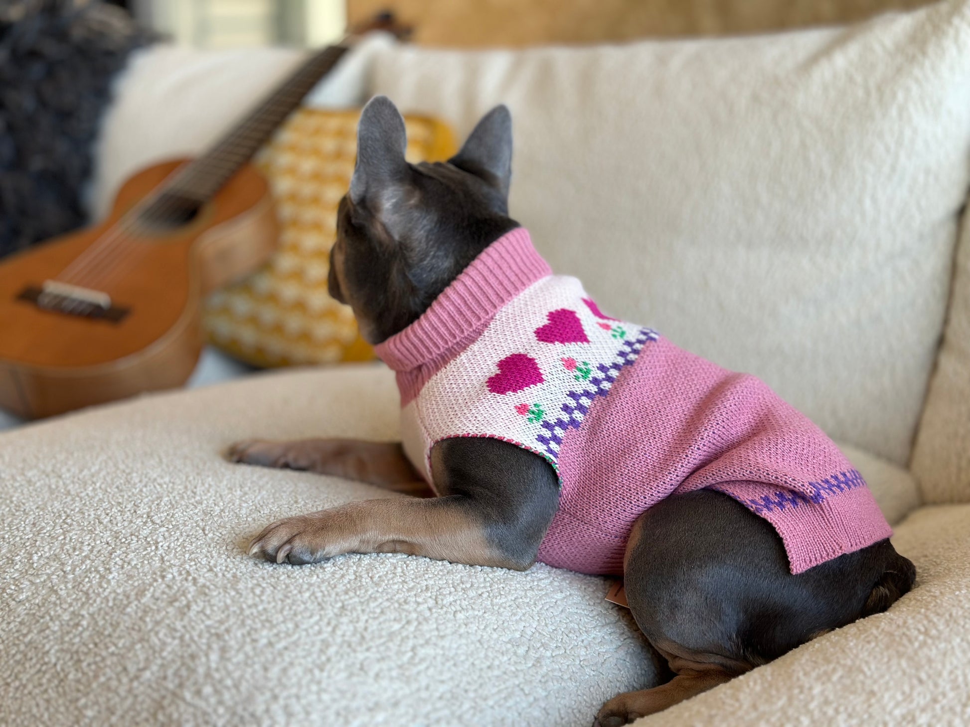 100% Polyester. Imported Item. Measure from your pup’s collar to back to ensure proper sizing. The sweater is sleeveless and an easy fit for most pups!